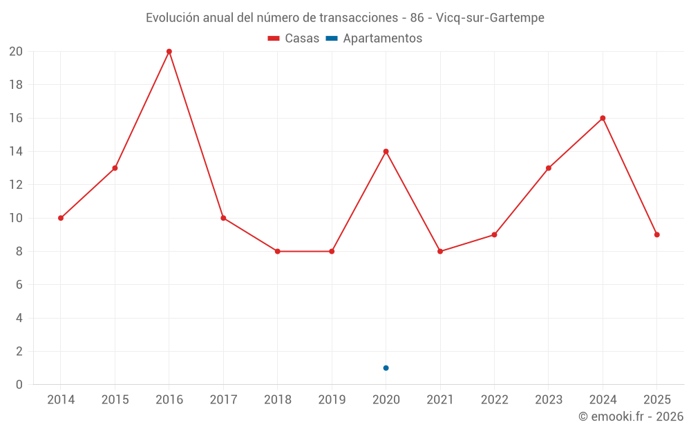 El precio mediano en las 21 transacciones de casas de los últimos 12 meses en la comuna de Vicq-sur-Gartempe fue de 919 € por metro cuadrado para un valor patrimonial medio de 75 000 €. Durante este período el 60% de las transacciones estuvieron entre 686 y 1 250 € por metro cuadrado (del 2º al 8º decil).