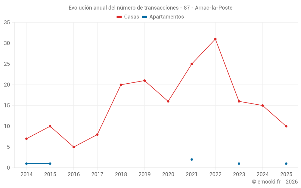 El precio mediano en las 20 transacciones de casas de los últimos 12 meses en la comuna de Arnac-la-Poste fue de 798 € por metro cuadrado para un valor patrimonial medio de 70 050 €. Durante este período el 60% de las transacciones estuvieron entre 310 y 1 057 € por metro cuadrado (del 2º al 8º decil).