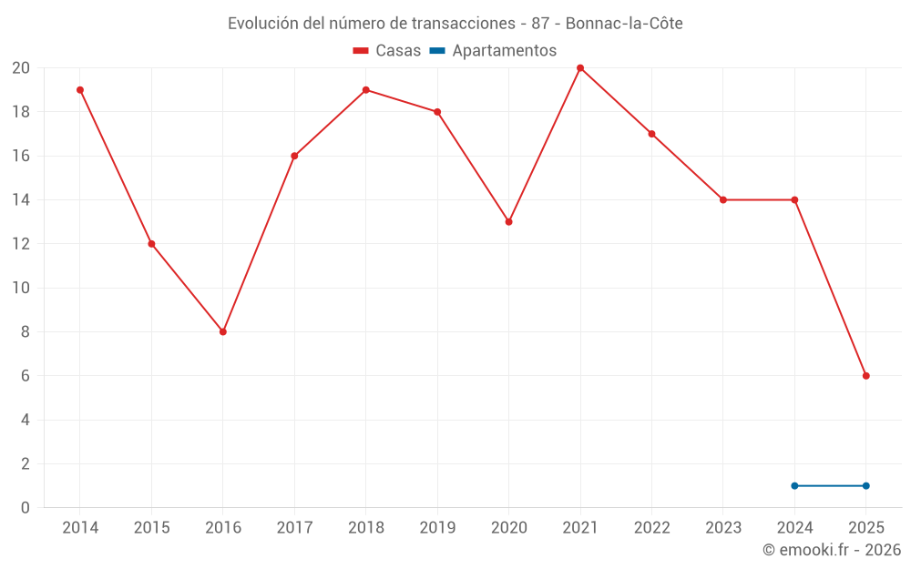 El precio mediano en las 16 transacciones de casas de los últimos 12 meses en la comuna de Bonnac-la-Côte fue de 1 497 € por metro cuadrado para un valor patrimonial medio de 131 000 €. Durante este período el 60% de las transacciones estuvieron entre 859 y 1 882 € por metro cuadrado (del 2º al 8º decil).