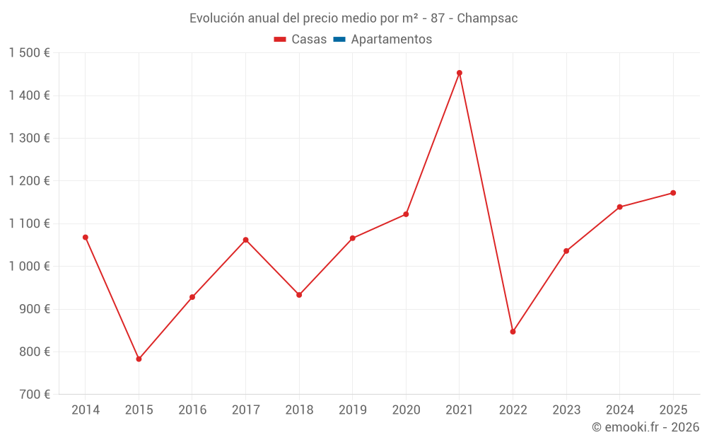 ¿Cuál es el precio por m2 de las casas en Champsac?