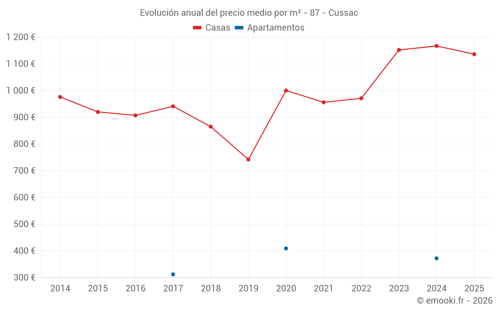 ¿Cuál es el precio por m2 de las casas en Cussac?
