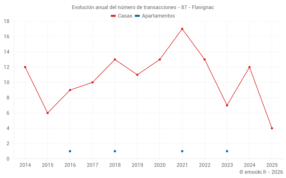 El precio mediano en las 20 transacciones de casas de los últimos 24 meses en la comuna de Flavignac fue de 1 382 € por metro cuadrado para un valor patrimonial medio de 126 900 €. Durante este período el 60% de las transacciones estuvieron entre 915 y 1 669 € por metro cuadrado (del 2º al 8º decil).