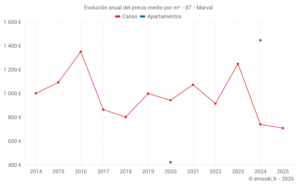 El precio mediano en las 26 transacciones de casas de los últimos 24 meses en la comuna de Marval fue de 748 € por metro cuadrado para un valor patrimonial medio de 69 500 €. Durante este período el 60% de las transacciones estuvieron entre 326 y 1 351 € por metro cuadrado (del 2º al 8º decil).