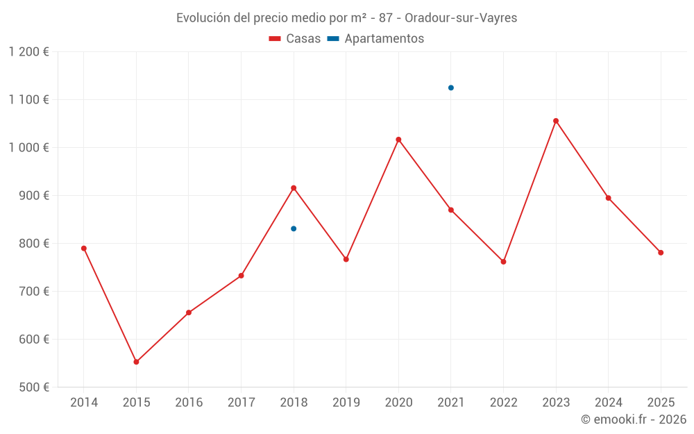 El precio mediano en las 25 transacciones de casas de los últimos 12 meses en la comuna de Oradour-sur-Vayres fue de 938 € por metro cuadrado para un valor patrimonial medio de 97 000 €. Durante este período el 60% de las transacciones estuvieron entre 448 y 1 406 € por metro cuadrado (del 2º al 8º decil).