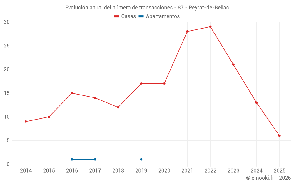 El precio mediano en las 31 transacciones de casas de los últimos 24 meses en la comuna de Peyrat-de-Bellac fue de 980 € por metro cuadrado para un valor patrimonial medio de 75 455 €. Durante este período el 60% de las transacciones estuvieron entre 397 y 1 320 € por metro cuadrado (del 2º al 8º decil).