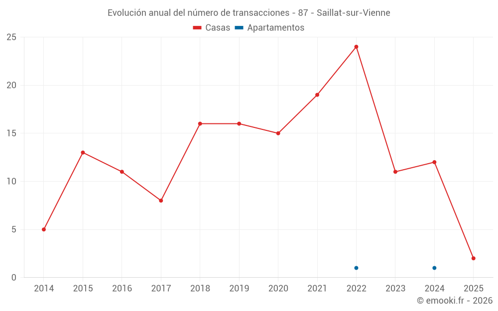 El precio mediano en las 19 transacciones de casas de los últimos 24 meses en la comuna de Saillat-sur-Vienne fue de 1 174 € por metro cuadrado para un valor patrimonial medio de 93 510 €. Durante este período el 60% de las transacciones estuvieron entre 811 y 1 440 € por metro cuadrado (del 2º al 8º decil).