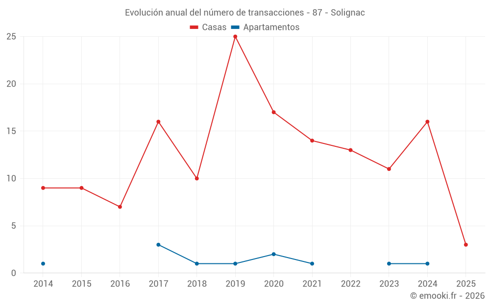 El precio mediano en las 24 transacciones de casas de los últimos 24 meses en la comuna de Solignac fue de 1 646 € por metro cuadrado para un valor patrimonial medio de 169 750 €. Durante este período el 60% de las transacciones estuvieron entre 1 185 y 1 941 € por metro cuadrado (del 2º al 8º decil).