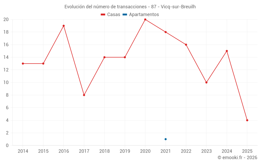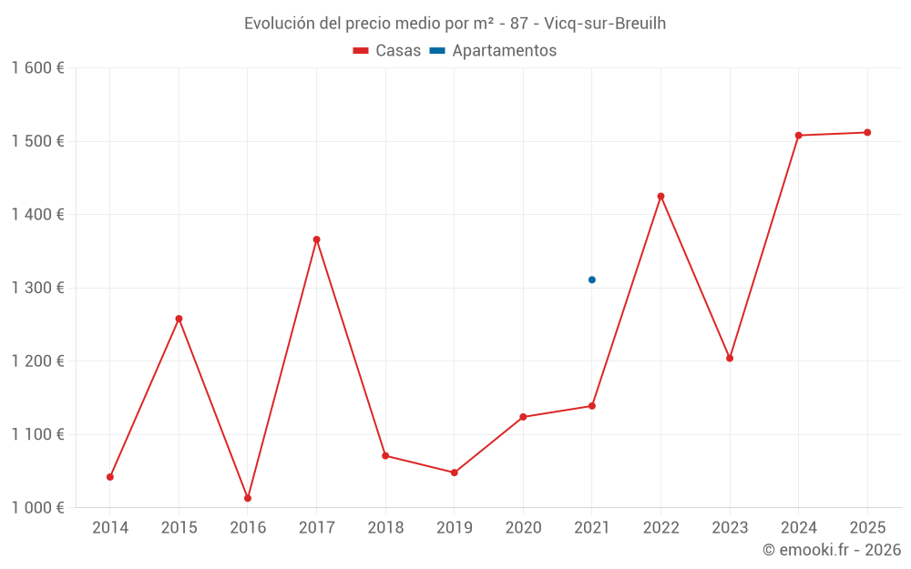 El precio mediano en las 23 transacciones de casas de los últimos 24 meses en la comuna de Vicq-sur-Breuilh fue de 1 490 € por metro cuadrado para un valor patrimonial medio de 150 000 €. Durante este período el 60% de las transacciones estuvieron entre 1 088 y 1 923 € por metro cuadrado (del 2º al 8º decil).
