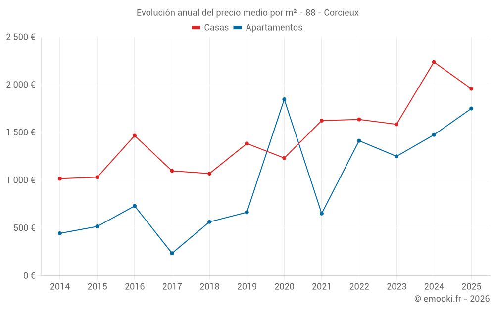 ¿Cuál es el precio por m2 de las casas en Corcieux?