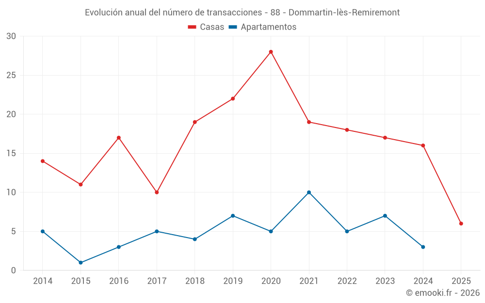 El precio mediano en las 32 transacciones de casas de los últimos 24 meses en la comuna de Dommartin-lès-Remiremont fue de 1 864 € por metro cuadrado para un valor patrimonial medio de 182 515 €. Durante este período el 60% de las transacciones estuvieron entre 1 233 y 2 278 € por metro cuadrado (del 2º al 8º decil).