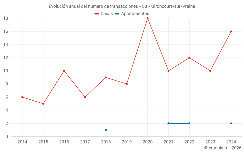 El precio mediano en las 22 transacciones de casas de los últimos 24 meses en la comuna de Gironcourt-sur-Vraine fue de 718 € por metro cuadrado para un valor patrimonial medio de 80 000 €. Durante este período el 60% de las transacciones estuvieron entre 398 y 1 235 € por metro cuadrado (del 2º al 8º decil).
