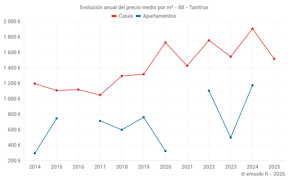 ¿Cuál es el precio por m2 de las casas en Taintrux?
