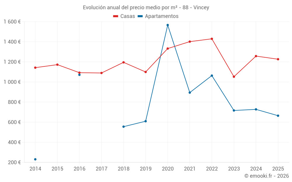 ¿Cuál es el precio por m2 de las casas en Vincey?