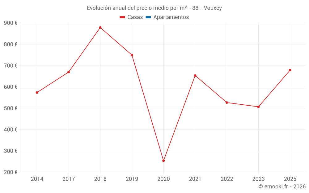 Mapa de precios de la vivienda en la comuna de Vouxey, elija una sección para ver las transacciones por parcela.
