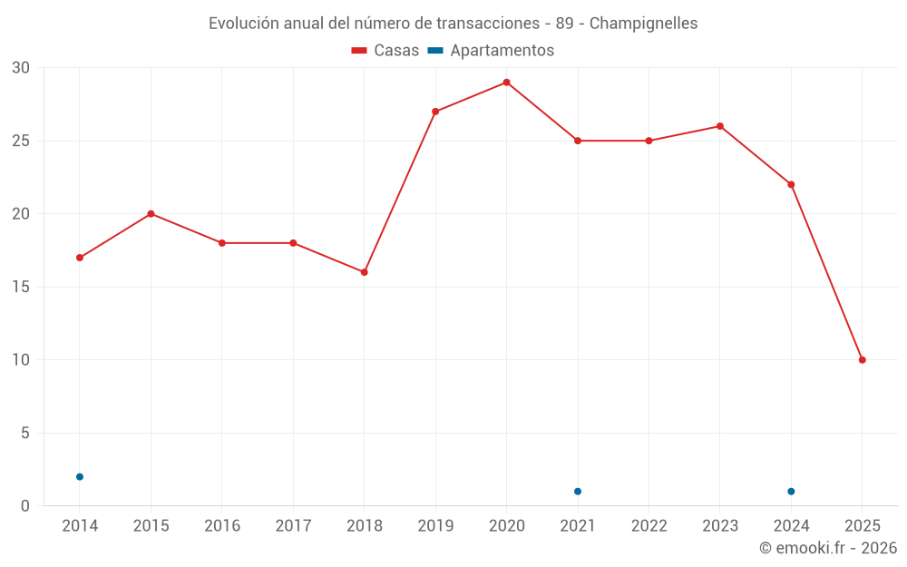 El precio mediano en las 24 transacciones de casas de los últimos 12 meses en la comuna de Champignelles fue de 1 027 € por metro cuadrado para un valor patrimonial medio de 61 000 €. Durante este período el 60% de las transacciones estuvieron entre 491 y 1 438 € por metro cuadrado (del 2º al 8º decil).