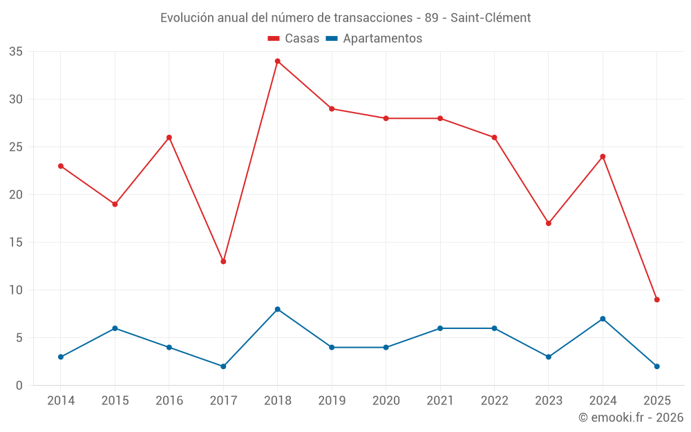 El precio mediano en las 21 transacciones de casas de los últimos 12 meses en la comuna de Saint-Clément fue de 1 967 € por metro cuadrado para un valor patrimonial medio de 177 000 €. Durante este período el 60% de las transacciones estuvieron entre 1 397 y 2 455 € por metro cuadrado (del 2º al 8º decil).