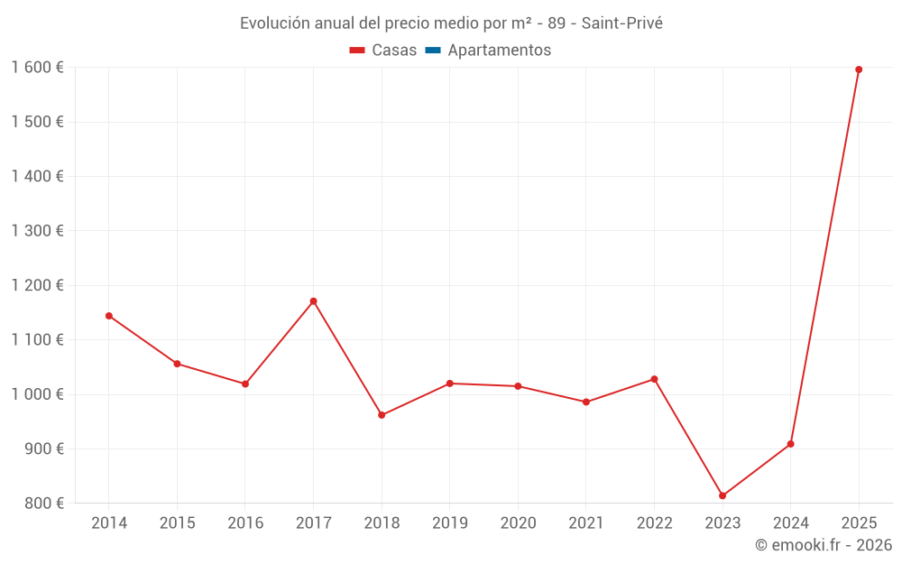 Evolución del precio medio por m² de las casas