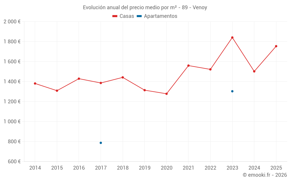 ¿Cuál es el precio por m2 de las casas en Venoy?