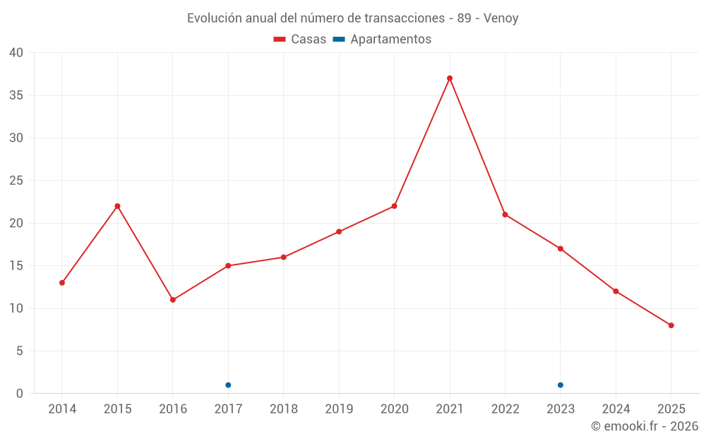 El precio mediano en las 26 transacciones de casas de los últimos 24 meses en la comuna de Venoy fue de 1 706 € por metro cuadrado para un valor patrimonial medio de 166 955 €. Durante este período el 60% de las transacciones estuvieron entre 1 333 y 2 260 € por metro cuadrado (del 2º al 8º decil).