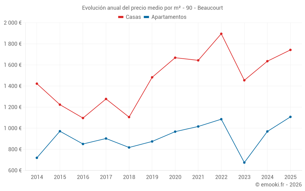 ¿Cuál es el precio por m2 de las casas en Beaucourt?