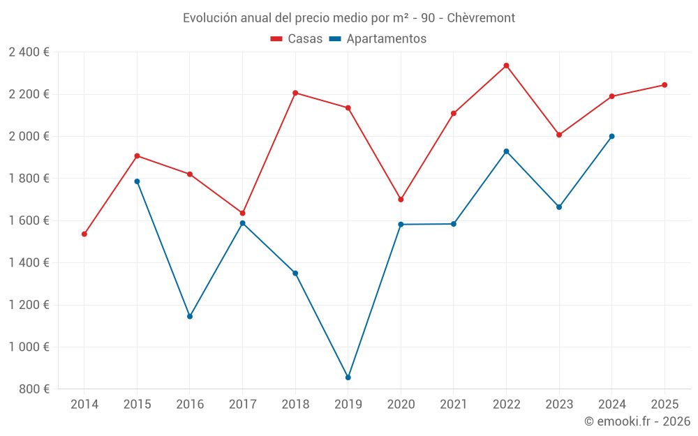 ¿Cuál es el precio por m2 de las casas en Chèvremont?