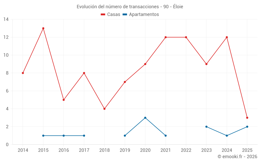El precio mediano en las 17 transacciones de casas de los últimos 24 meses en la comuna de Éloie fue de 1 947 € por metro cuadrado para un valor patrimonial medio de 231 550 €. Durante este período el 60% de las transacciones estuvieron entre 1 235 y 2 253 € por metro cuadrado (del 2º al 8º decil).