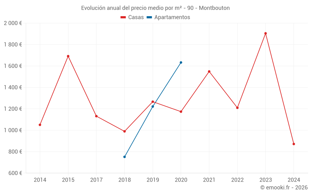 Evolución del precio medio por m² de las casas