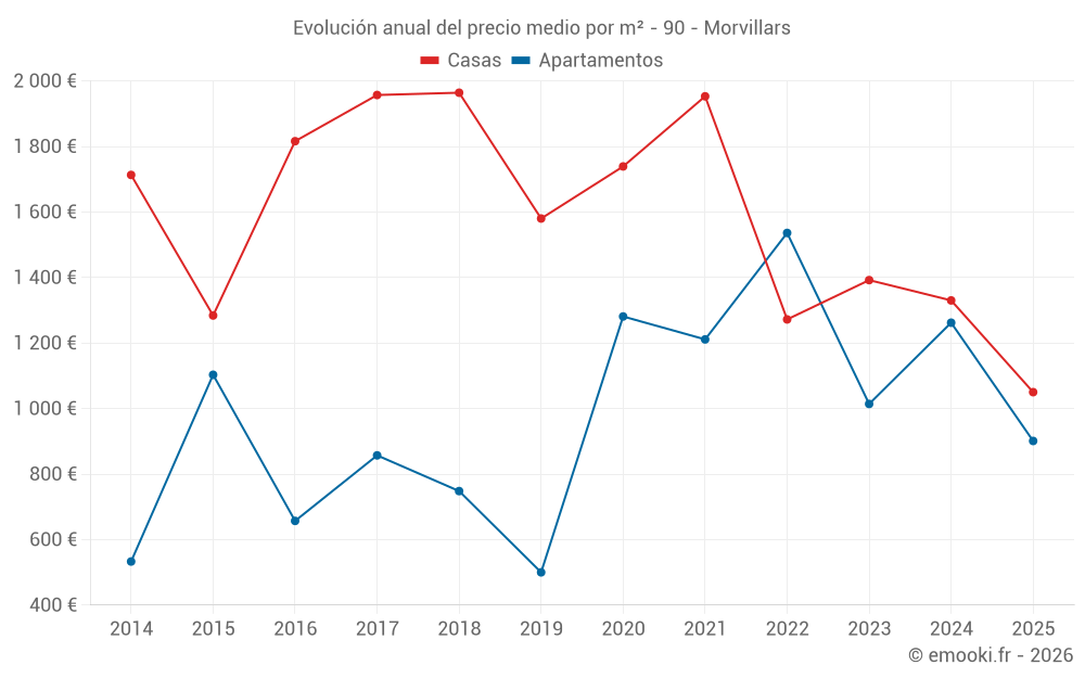 Evolución anual del precio medio por m²