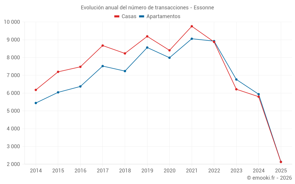 El precio mediano en las 585 transacciones de apartamentos de los últimos 3 meses en el departamento de Essonne fue de 2 845 € por metro cuadrado para un valor patrimonial medio de 146 900 €. Durante este período el 60% de las transacciones estuvieron entre 2 033 y 3 712 € por metro cuadrado (del 2º al 8º decil).
