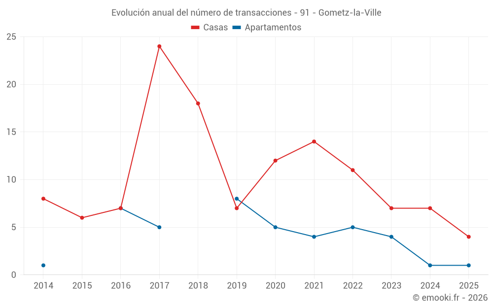 El precio mediano en las 15 transacciones de casas de los últimos 24 meses en la comuna de Gometz-la-Ville fue de 3 589 € por metro cuadrado para un valor patrimonial medio de 426 800 €. Durante este período el 60% de las transacciones estuvieron entre 2 786 y 4 142 € por metro cuadrado (del 2º al 8º decil).