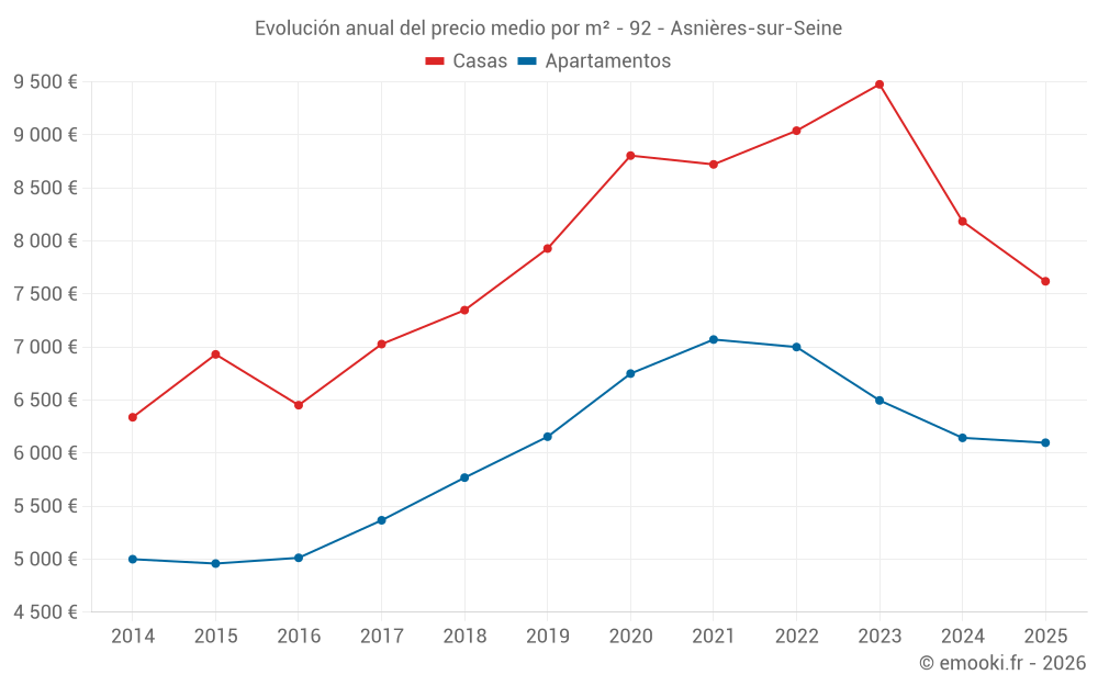 ¿Cuál es el precio por m2 de las casas en Asnières-sur-Seine?