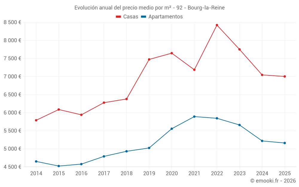¿Cuál es el precio por m2 de las casas en Bourg-la-Reine?