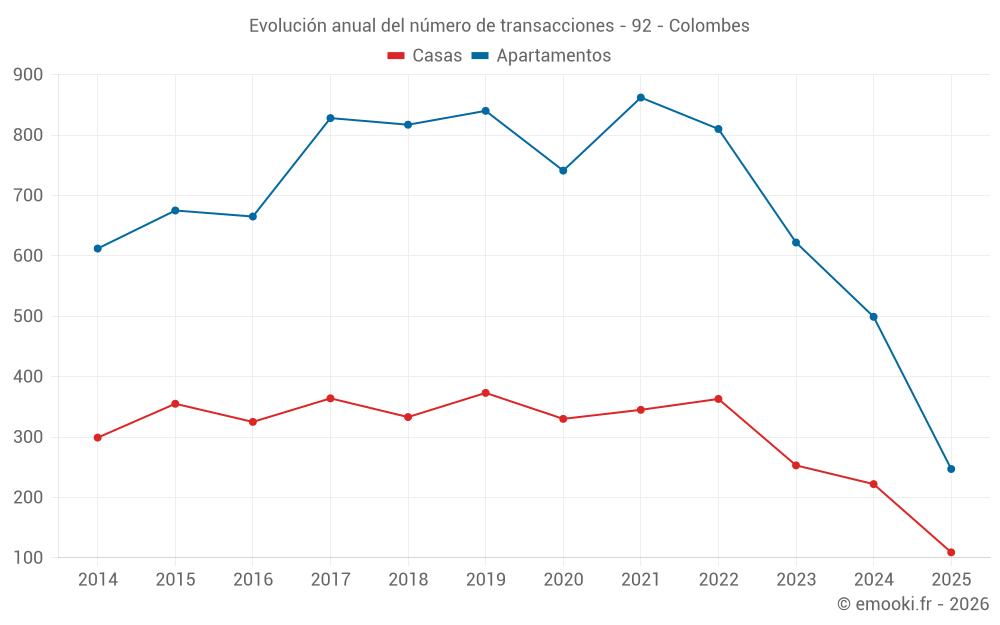 El precio mediano en las 74 transacciones de apartamentos de los últimos 3 meses en la comuna de Colombes fue de 4 839 € por metro cuadrado para un valor patrimonial medio de 235 000 €. Durante este período el 60% de las transacciones estuvieron entre 4 015 y 6 002 € por metro cuadrado (del 2º al 8º decil).
