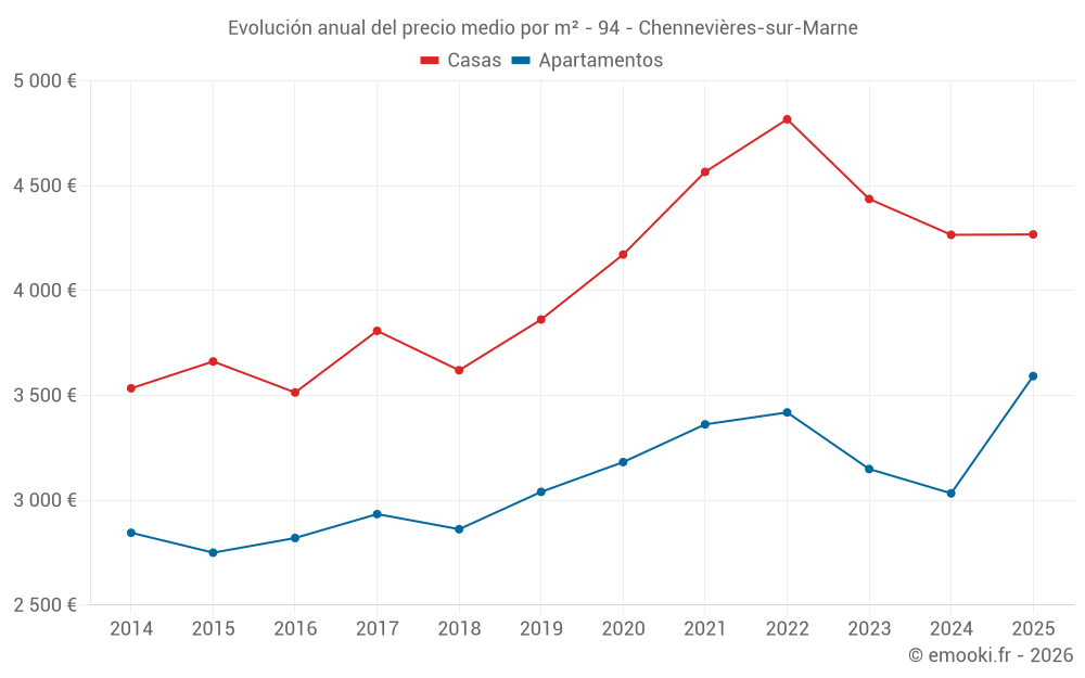 ¿Cuál es el precio por m2 de las casas en Chennevières-sur-Marne?