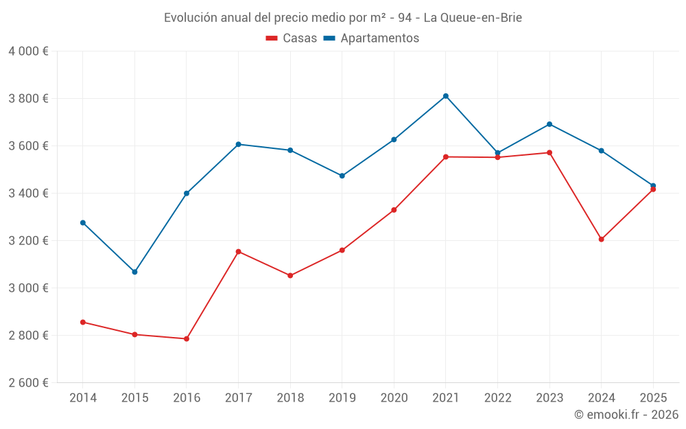 ¿Cuál es el precio por m2 de las casas en La Queue-en-Brie?