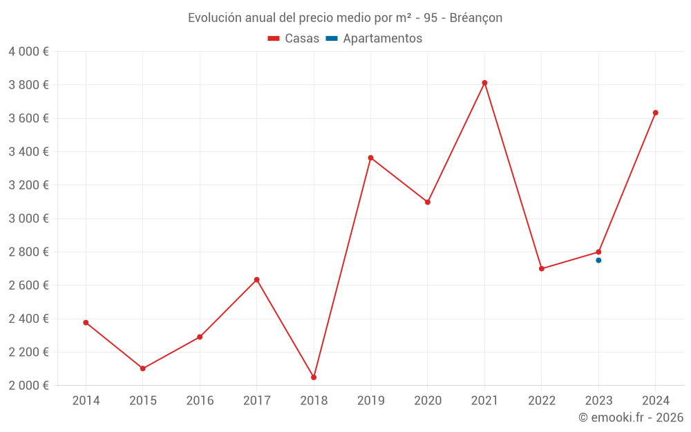 Evolución del precio medio por m² de las casas