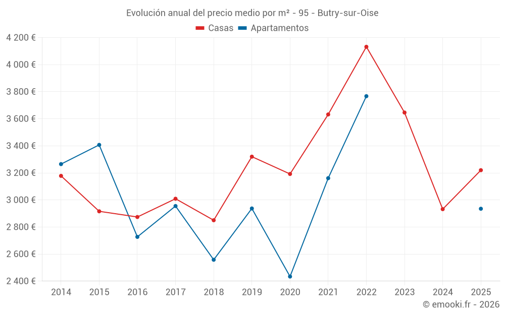 ¿Cuál es el precio por m2 de las casas en Butry-sur-Oise?