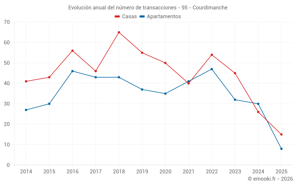 El precio mediano en las 26 transacciones de apartamentos de los últimos 12 meses en la comuna de Courdimanche fue de 3 318 € por metro cuadrado para un valor patrimonial medio de 156 000 €. Durante este período el 60% de las transacciones estuvieron entre 3 000 y 3 615 € por metro cuadrado (del 2º al 8º decil).