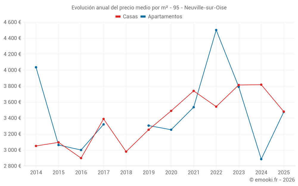 ¿Cuál es el precio por m2 de las casas en Neuville-sur-Oise?