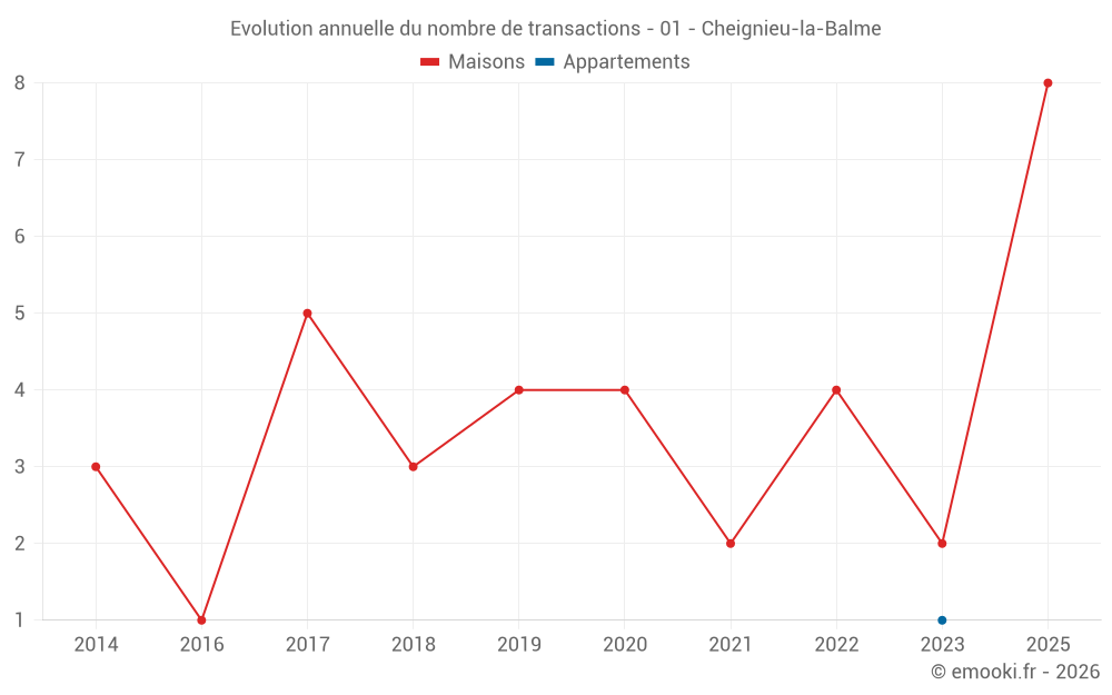 Le prix au m² des maisons a diminué de 13% depuis 3 ans, mais il a augmenté de 200% en 8 ans.