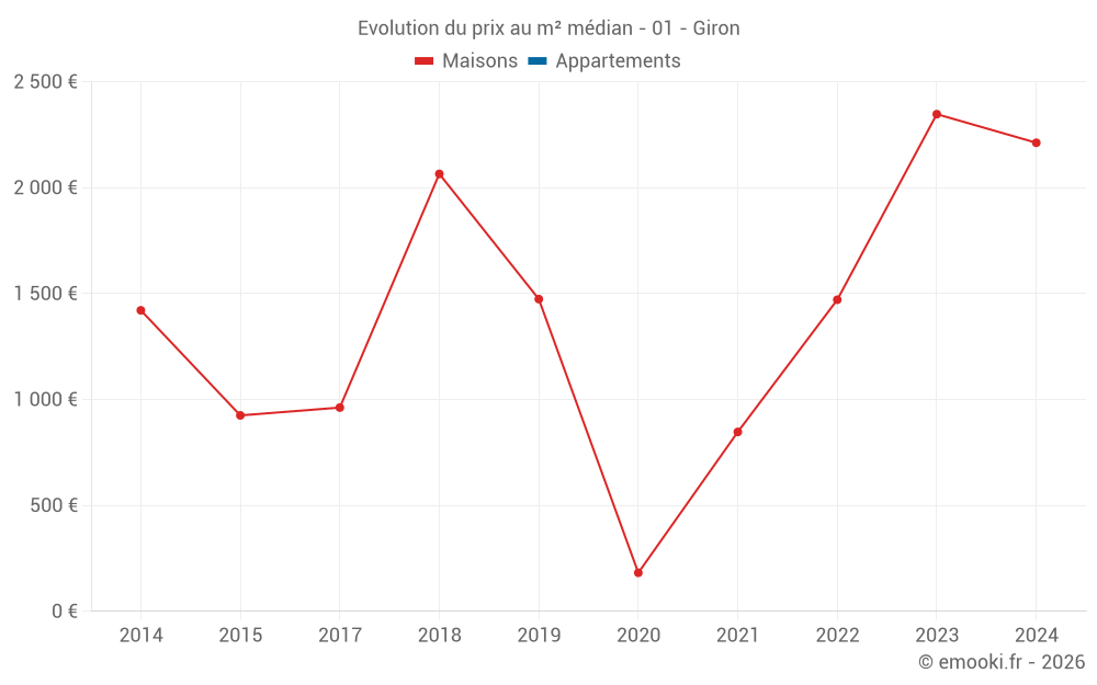 Attention, dernière année incomplète. Projections effectuées sur la base des proportions entre semestres de l'année précédente au niveau départemental/national et par catégorie de bien.