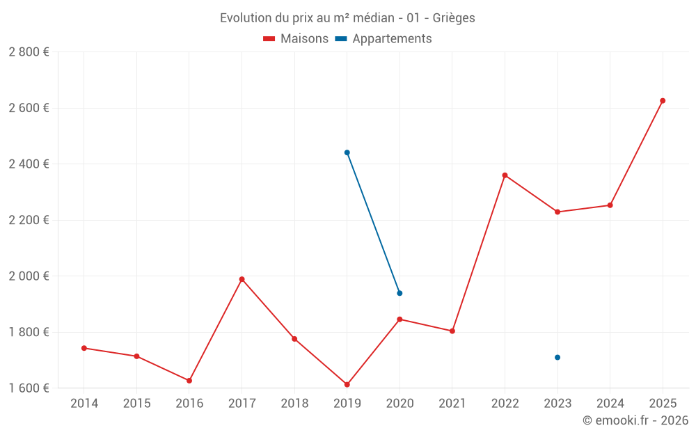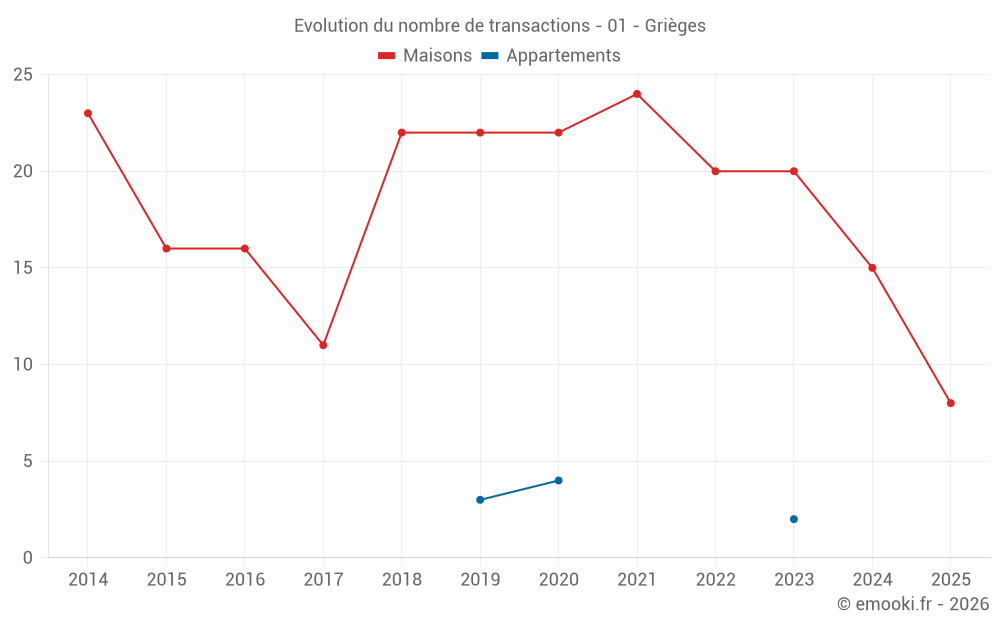 Carte des prix de l'immobilier dans la commune de Grièges, choississez une section pour voir les transactions par parcelle.