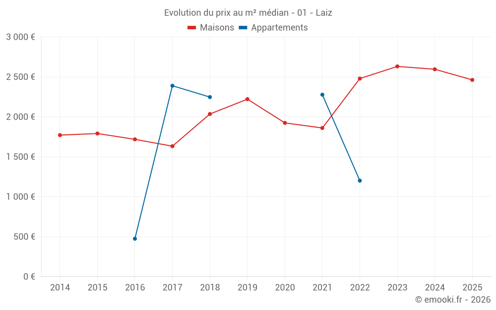 Carte des prix de l'immobilier dans la commune de Laiz, choississez une section pour voir les transactions par parcelle.