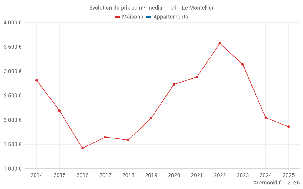 Carte des prix de l'immobilier dans la commune du Montellier, choississez une section pour voir les transactions par parcelle.