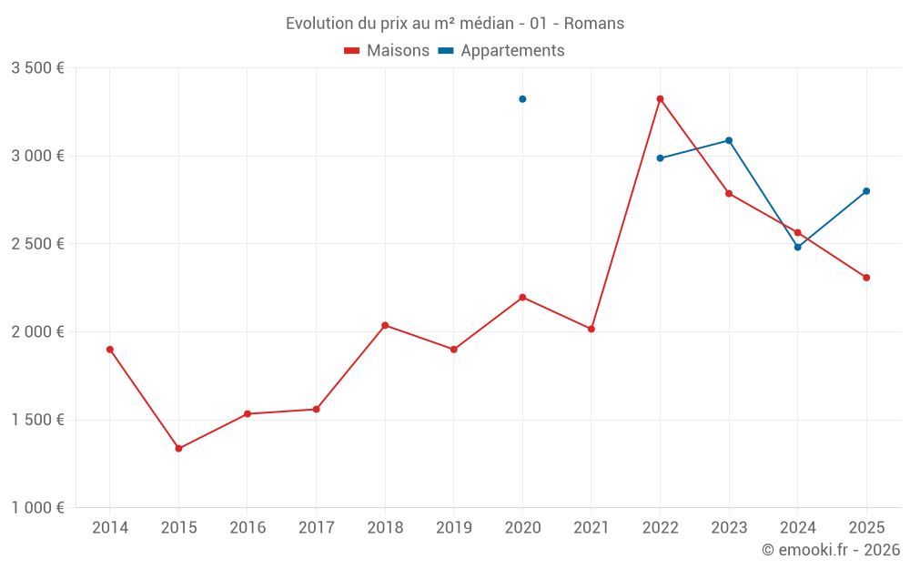 Carte des prix de l'immobilier dans la commune de Romans, choississez une section pour voir les transactions par parcelle.