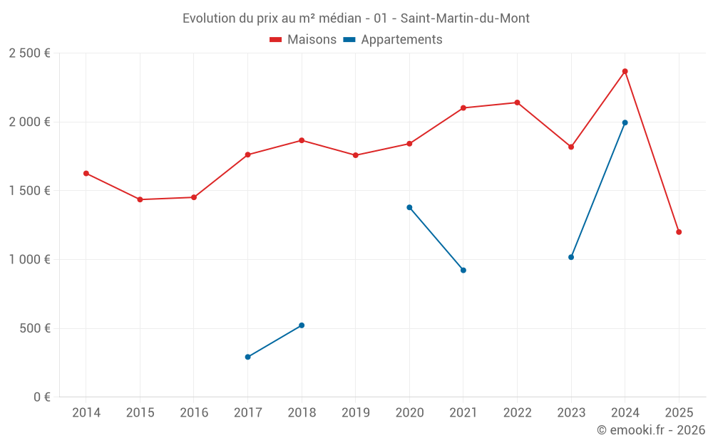Attention, dernière année incomplète. Projections effectuées sur la base des proportions entre semestres de l'année précédente au niveau départemental/national et par catégorie de bien.