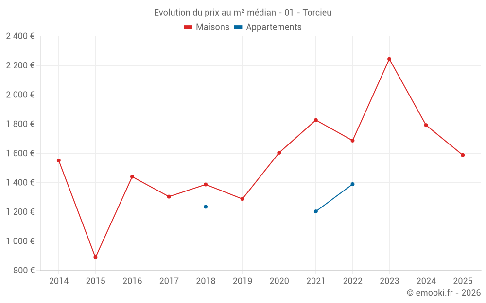 Attention, dernière année incomplète. Projections effectuées sur la base des proportions entre semestres de l'année précédente au niveau départemental/national et par catégorie de bien.