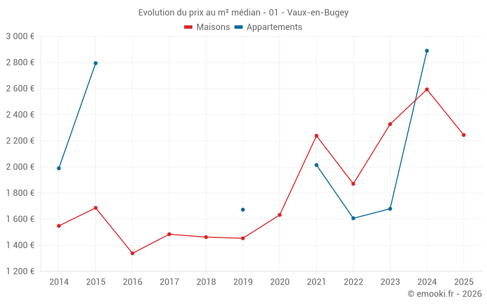 Carte des prix de l'immobilier dans la commune de Vaux-en-Bugey, choississez une section pour voir les transactions par parcelle.
