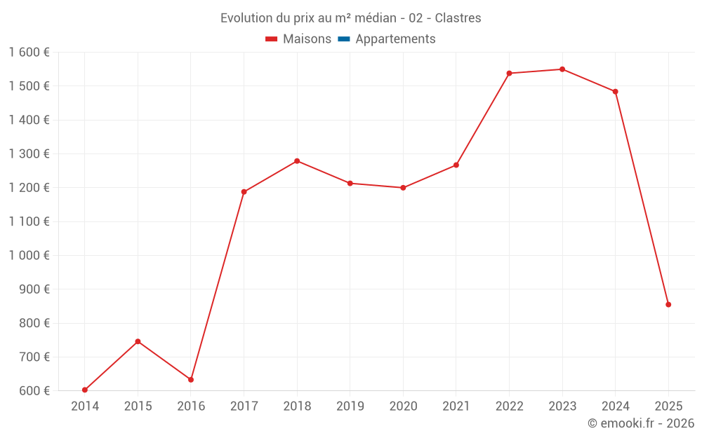 Carte des prix de l'immobilier dans la commune de Clastres, choississez une section pour voir les transactions par parcelle.