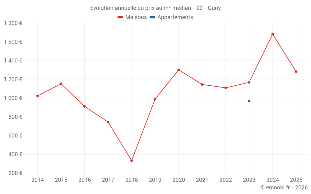 Prix du m² à Guny
